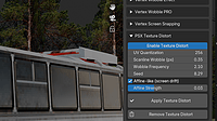 Texture Distort A new effect that simulates PS1-style texture warping and wobble UV Quantization — sets the UV grid step. Lower values = stronger pixel snapping, higher = cleaner Scanline Wobble —...